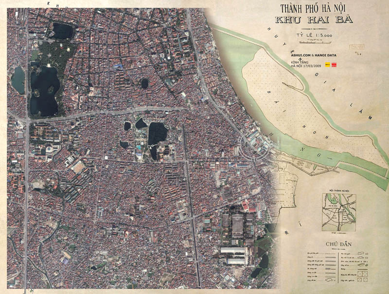 So sánh bản đồ Quận Hai Bà Trưng, quận Đống Đa những năm 1960 và bản đồ vệ tinh chụp sau gần 50 năm
