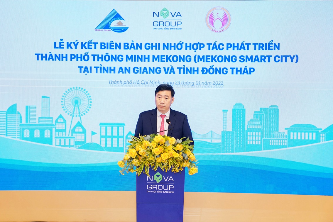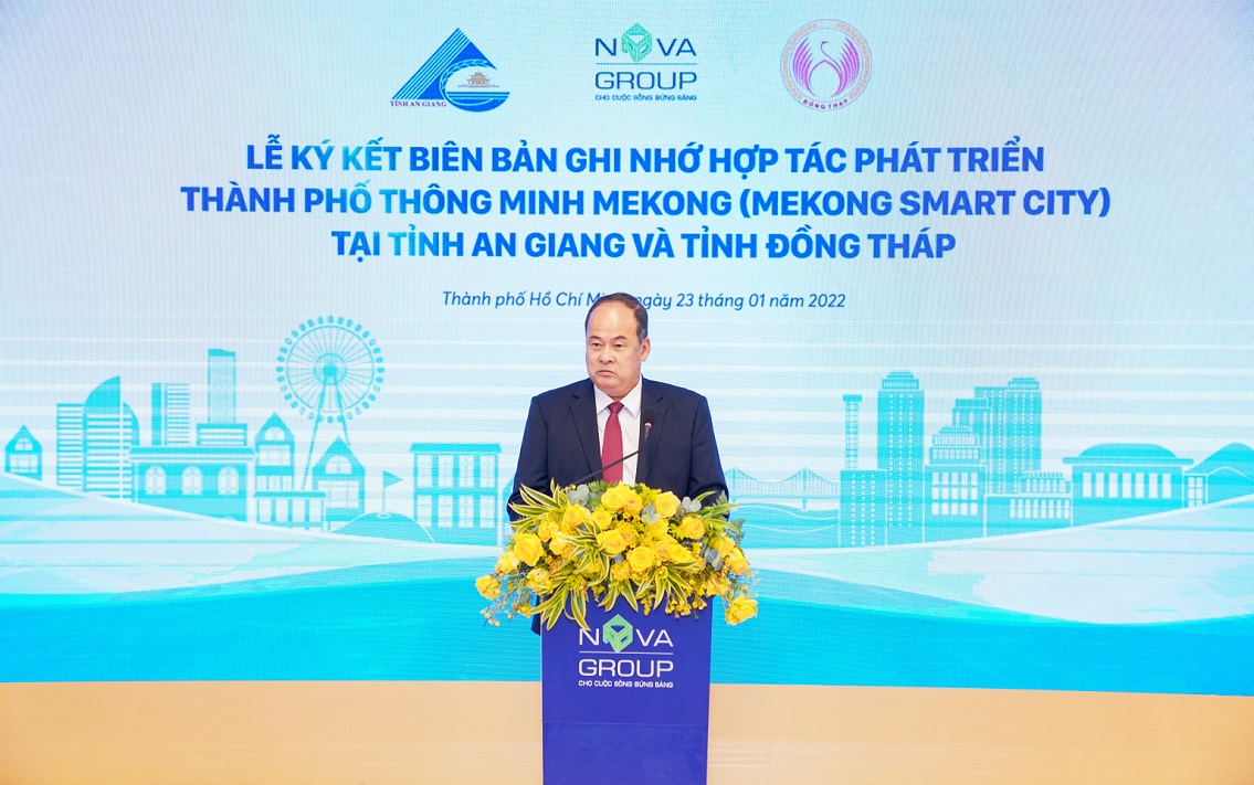 Lễ ký kết biên bản ghi nhớ hợp tác phát triển Thành phố thông minh Mekong – Mekong Smart City, thuộc thị xã Tân Châu và huyện Hồng Ngự, giữa tỉnh An Giang, tỉnh Đồng Tháp và NovaGroup diễn ra sáng 23/1 tại TPHCM.