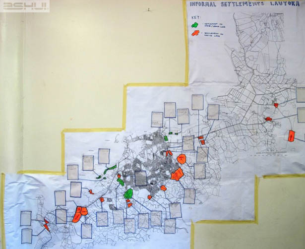 Bản đồ này nhằm xác định và phân tích tất cả các vấn đề ở quy mô thành phố và để thấy được các thành phần khác nhau của một thành phố đặc biệt là các khu định cư không chính thức hoạt động với nhau như thế nào. Bản đồ khảo sát ở quy mô thành phố cho thấy vị trí của những cộng đồng không chính thức với số hộ gia dình, lịch sử, các khó khăn, tình trạng sở hữu/sử dụng đất đai và giải pháp nhà ở cho mỗi cộng đồng.