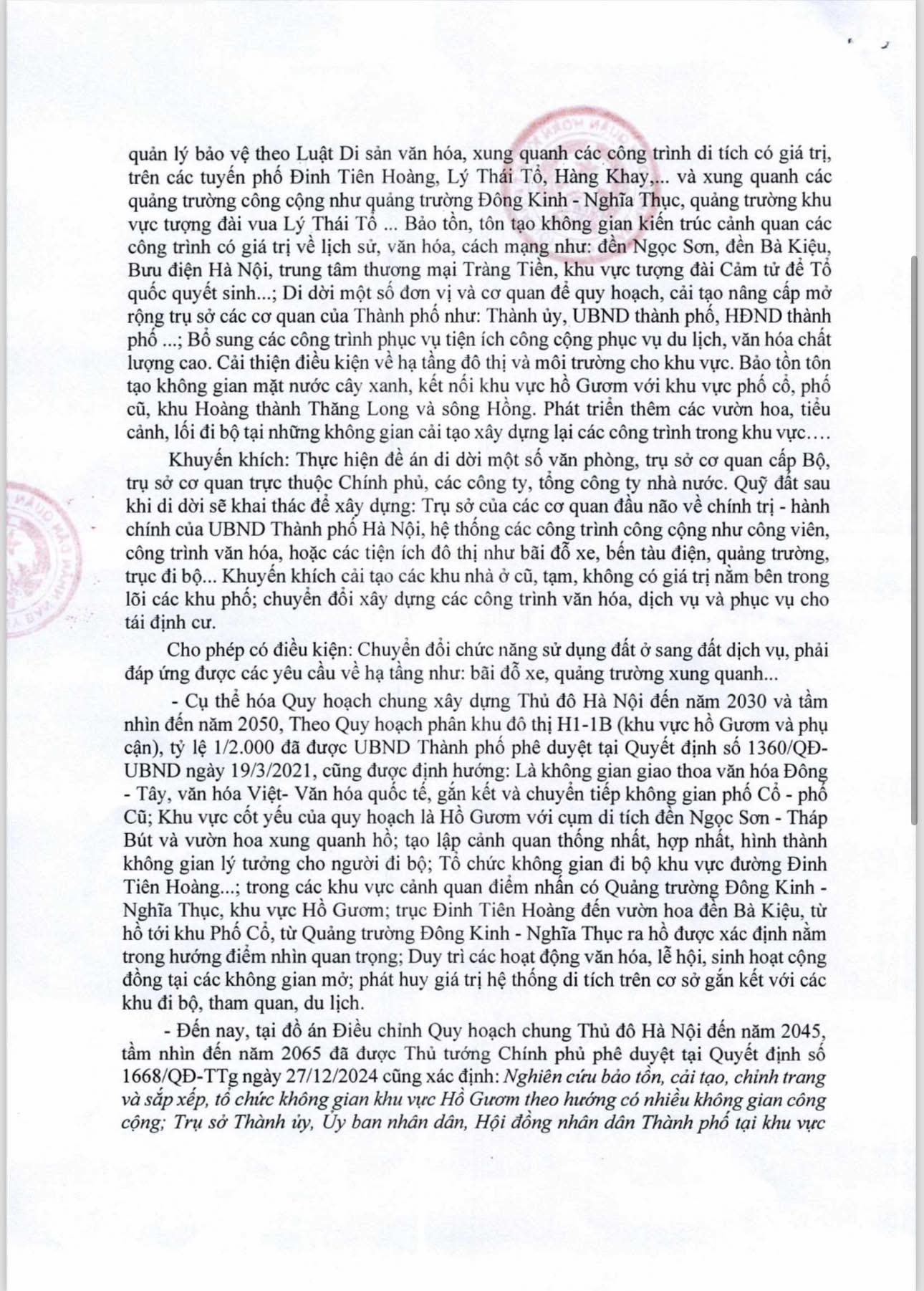 Cụ thể hóa Quy hoạch chung xây dựng Thủ đô Hà Nội đến năm 2030 và tầm nhìn đến năm 2050, tại Quyết định số 1360/QĐ-UBND, ngày 19/3/2021, UBND Thành phố đã phê duyệt Quy hoạch phân khu đô thị H1-1B (khu vực hồ Gươm và phụ cận), tỷ lệ 1/2.000.