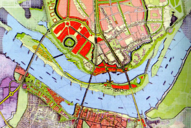 Hình 11a,b: Mở rộng đô thị về phía bắc các con sông kết hợp với những con kênh mới ở sông Waal gần Nijmegen, dự án đang được xây dựng.