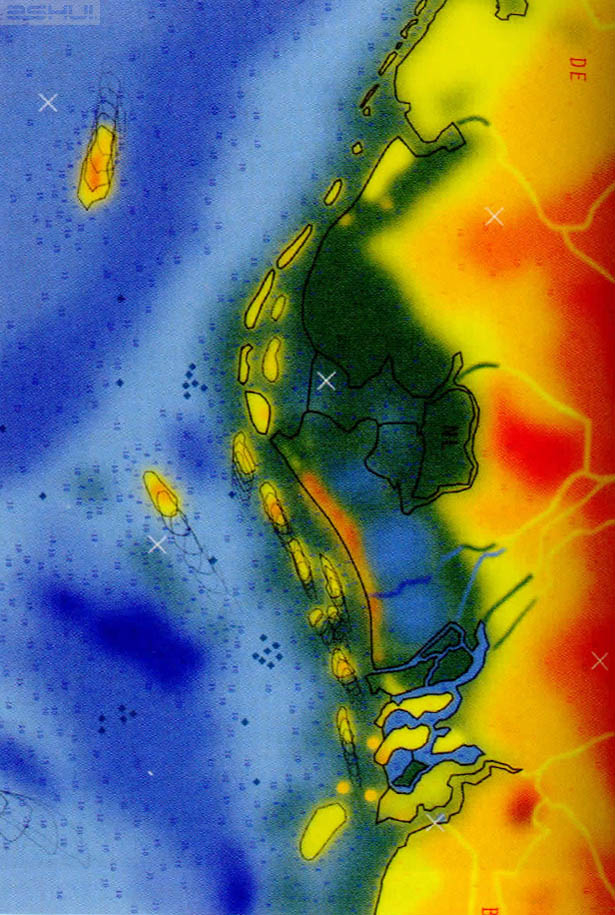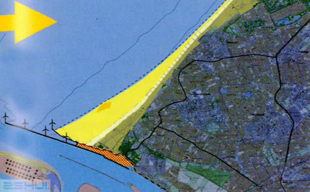 Hình 3: “Hướng về phía biển”, dự án hình thành một chuỗi các hòn đảo làm rào chắn, do Ruimtelijk Planbureau thiết kế, thuộc Viện nghiên cứu quốc gia về Phát triển không gian, năm 2003.