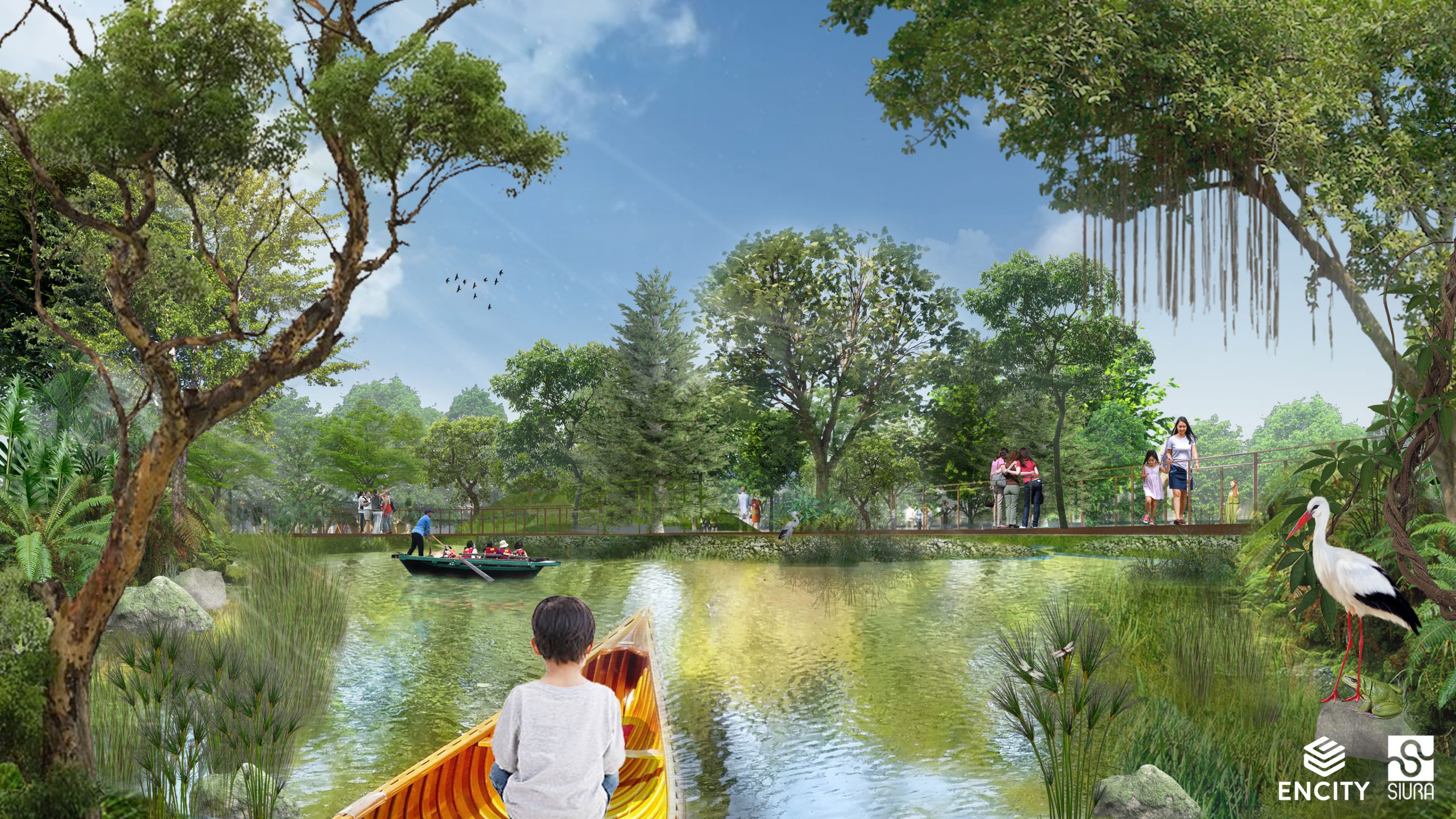 - Phát triển thuận thiên theo 2 chiều của hệ sinh thái: Bắc Nam theo dòng chảy và Đông Tây theo địa hình, tái tạo hệ sinh thái tự nhiên ở phía Bắc và rìa phía Đông;