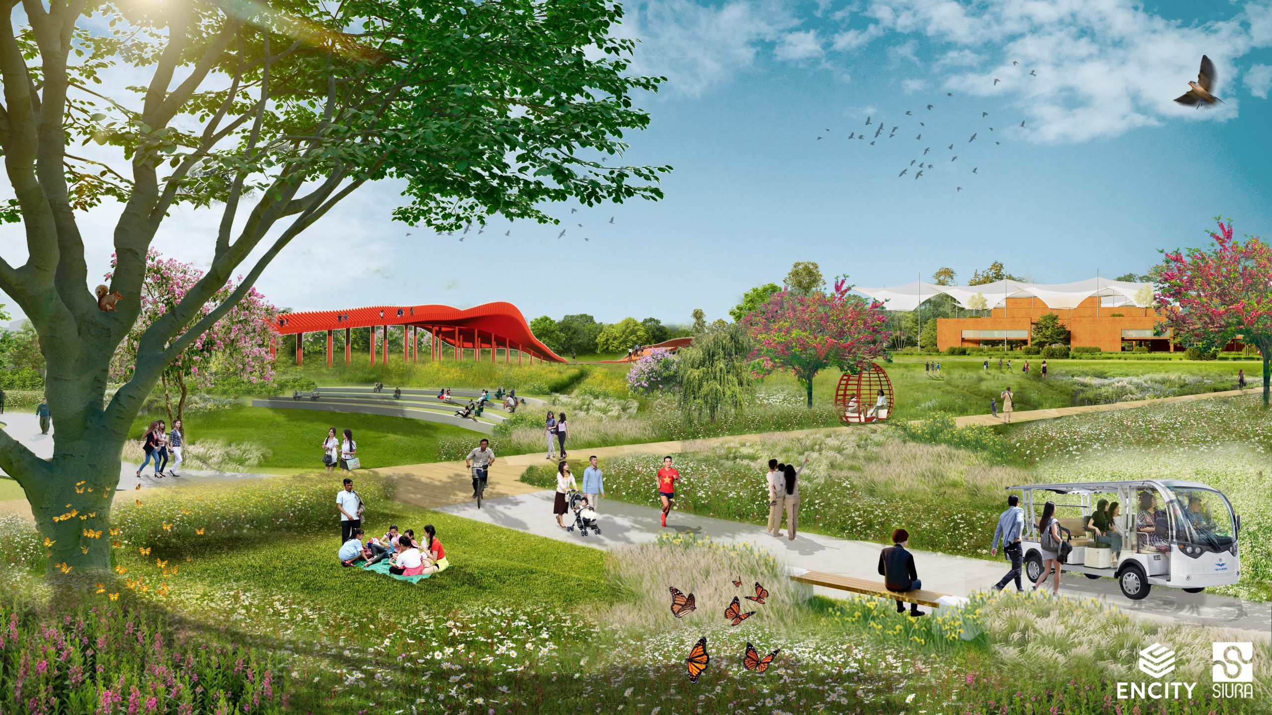 - Kéo dài những tuyến đường trục chính đô thị vào công viên tạo thành 7 điểm tiếp cận và lan tỏa mảng xanh vào đô thị;