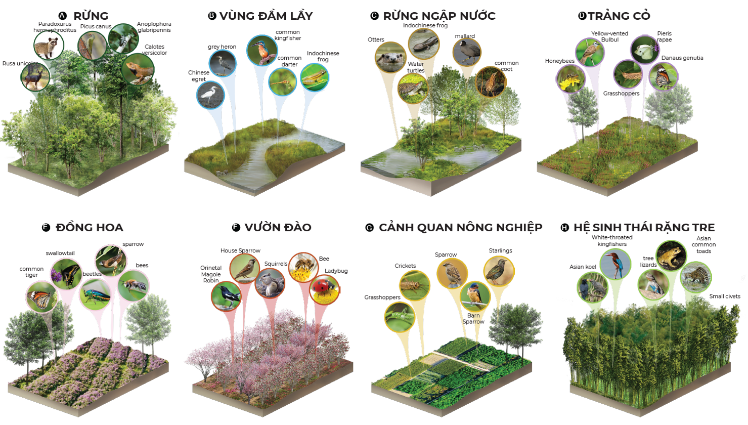 - Tái sinh hệ sinh thái tạo điều kiện cho các loài động thực vật bản địa trên cạn và dưới nước.