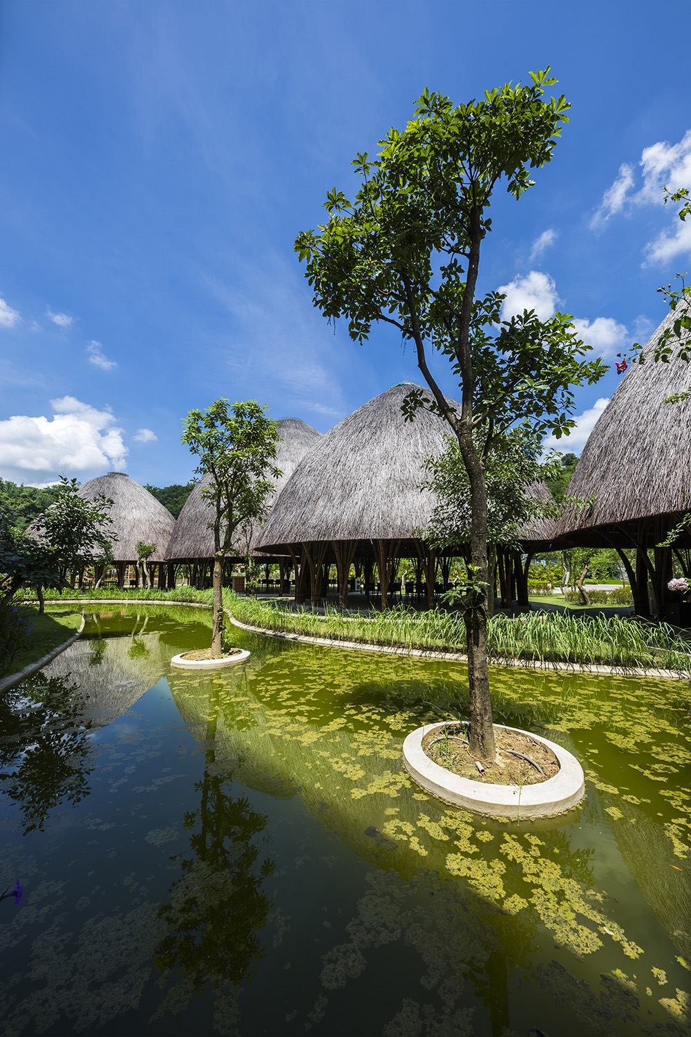 Cấu trúc tre nguyên khối lấy cảm hứng từ những giỏ tre truyền thống. Mỗi nhà vòm có cấu trúc hai lớp với mái tranh. Một giếng trời trên đỉnh nhà vòm mang đến ánh sáng và nguồn gió tự nhiên.