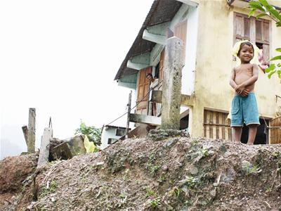 - Ảnh bên : Khu tái định cư Alua nằm chênh vênh trong vùng sạt lở