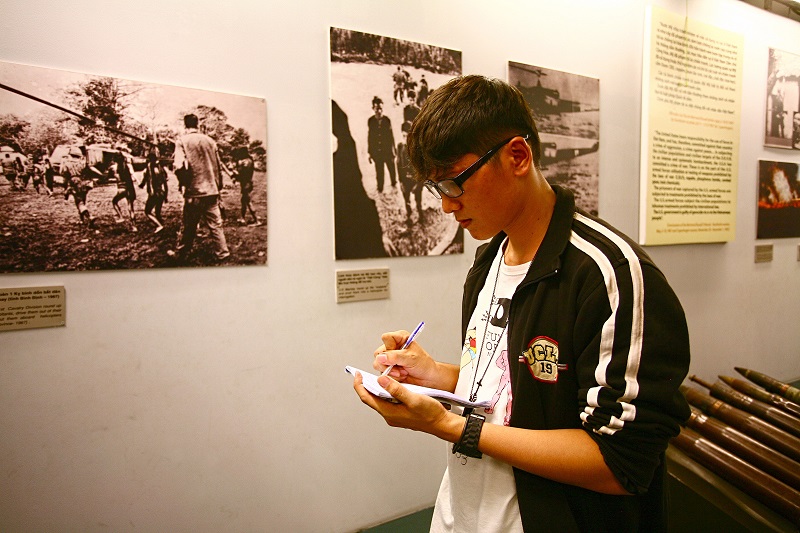 Nguyễn Văn Vũ, sinh viên trường Đại học Tài chính – Marketing (TP Hồ Chí Minh) lặng lẽ tới bảo tàng một mình để tìm hiểu về lịch sử
