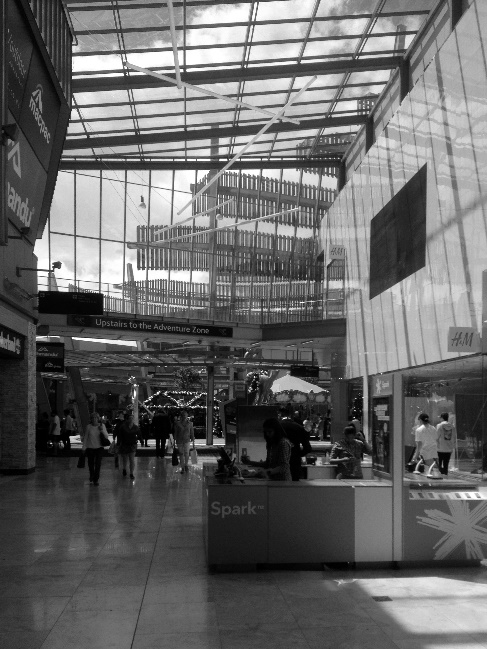 Đi kèm theo đó là sự lên ngôi của trung tâm thương mại (TTTM), một mặt đóng góp cho hình ảnh hiện đại của đô thị, mặt khác chúng đóng vai trò như sự thay thế cho KGCC – như một nơi cộng đồng có thể gặp gỡ và tương tác. Tuy nhiên John Goss(4) (1993) thông qua nghiên cứu của ông về hình thức, chức năng các TTTM tại Mỹ đã rút ra kết luận rằng ý nghĩa ẩn sau TTTM đơn thuần là logic của việc kiếm lợi nhuận. Tất cả những yếu tố trang trí, việc sắp đặt gian hàng nhiều khi có nét tương đồng với quảng trường xưa kia, nhưng mục đích duy nhất mà nó hướng tới là thúc đẩy khách mua hàng. Và ông gọi đó là phép màu của TTTM.