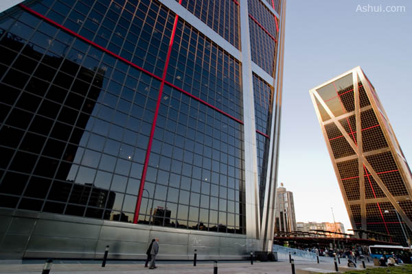Với cấu trúc bằng bêtông cốt thép, đá granite và nhôm, cả hai tòa tháp đều được bao bọc bởi một lớp kính tối màu bên ngoài. Các góc ở mỗi tòa tháp đều được xây nghiêng một cách ngoạn mục như muốn “khoe khoang” một Madrid năng động và hiện đại ngay từ cái nhìn đầu tiên khi khách đến thủ đô này.