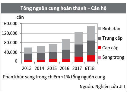 Theo phân tích của Công ty Jones Lang Lasalle (JLL), TP Hồ Chí Minh tiếp tục ghi nhận số lượng nguồn cung mới mở bán trong quý III/2018 khá hạn chế. Lượng bán cao hơn 16,4% theo quý, đạt 8.086 căn. Tỷ lệ giữa số căn được bán và số căn mở bán trong quý trung bình đạt khoảng 70%.