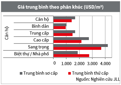 Ở thị trường sơ cấp, giá căn hộ được ghi nhận giảm nhẹ do đồng VND mất giá so với đồng USD, tuy nhiên vẫn giữ ổn định theo quý trên tất cả các phân khúc. Thị trường căn hộ thứ cấp ghi nhận tăng trưởng về giá có dấu hiệu chững lại so với các quý trước, cùng với mức giảm đáng kể của phân khúc căn hộ sang trọng.