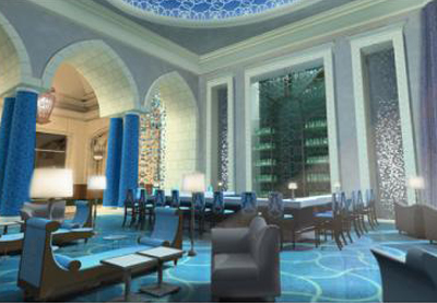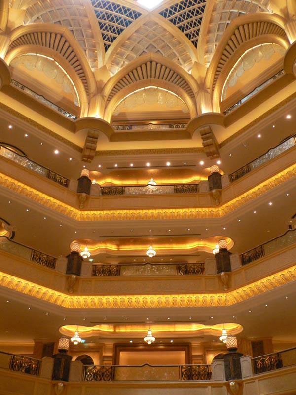 Nội thất bên trong của khách sạn càng có thể nói là xa hoa đến cực điểm, bất kỳ chỗ nào bạn nhìn thấy đều được dát vàng hoặc là vàng khối thật hoàn toàn, ngay như cái nắm cửa, ống dẫn nước, ống thoát nước nhà vệ sinh hay ngay đến một tờ giấy vệ sinh Mặc dù đều được làm từ vàng nhưng phong cách hoàn toàn không dung tục mà lại thoát lên gu thẩm mỹ quý tộc tuyệt vời của người thiết kế.