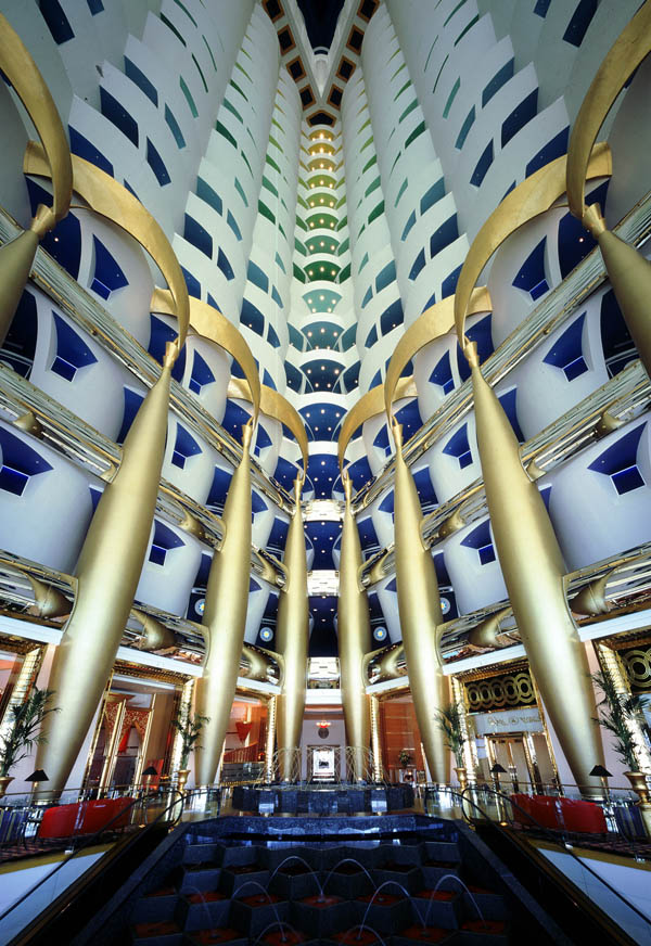 Burj Al Arab là điểm nhấn mới tại Dubai, là tượng trưng cho sự xa hoa của Arập. Mỗi một bước tiến vào khách sạn là một bước tìm hiểu và hưởng thụ mạnh hơn về sự xa hoa của đất nước này. Trong một căn phòng đều có ít nhất 17 chiếc điện thoại các loại, luôn dùng cùng lúc 8 chiếc xe Lexus để đón tiếp từ sân bay đến khách sạn. Bạn cũng có thể yêu cầu đón tiếp bằng trực thăng lên thẳng.