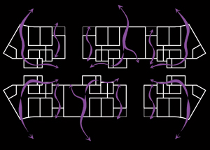 Sơ đồ nghiên cứu thông gió tự nhiên cho hành lang / Mặt bằng tồng thể.