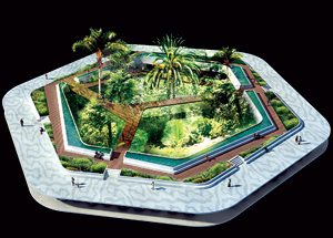 Cho mỗi không gian khác nhau, chúng tôi đã nghiên cứu và tìm ra những loại cây của khu vực, phù hợp với khí hậu của Singapore, để rồi từ đó đưa ra bốn loại phong cảnh tiêu biểu của vùng Đông Nam Á. Đầu tiên là những “thửa lúa” ở cạnh bờ kênh và tạo ra những bậc thang trải dần xuống nước, là nơi người dân có thể ngồi chơi, chuyện trò và đi dạo. Thứ hai là các “khu rừng rậm” trong những khoảng sân nhằm mang lại bóng mát trong sân và để nối liền tầng hầm để xe và mặt đất. Thứ ba là những khu vườn cây cọ ở phía đằng sau của tổ hợp. Những cây cọ này rất cao, phù hợp với chiều cao của công trình. Và cuối cùng, chính công trình là những “ngọn núi xanh” cùng với sự xen kẽ và hoà nhập của cây trong công trình.