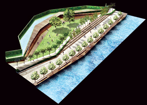Đó là hình ảnh của những thửa ruộng bậc thang trải dần xuống nước, một hình ảnh của thiên nhiên rất đặc trưng và thơ mộng ở các nước nông nghiệp Đông Nam Á. Trong công trình của chúng tôi, tính chất này đã tạo sự kết nối gắn bó giữa tất cả các tầng với nhau từ trên xuống thông qua những khoảng sân terrace, từ đó tạo ra sự liên kết và thống nhất từ tổng thể của cả khu tổ hợp đến từng căn hộ, cũng như sự liên hệ trực tiếp của công trình với dòng kênh, mặt chính của công trình cùng với các khu vườn nhìn ra kênh. Hình dáng này của tổ hợp cũng tạo ra những khoảng không gian công cộng ở tất cả các tầng từ mặt đất lên đến mái.