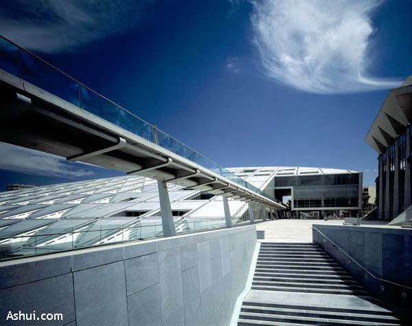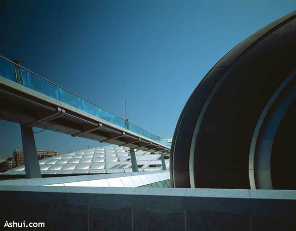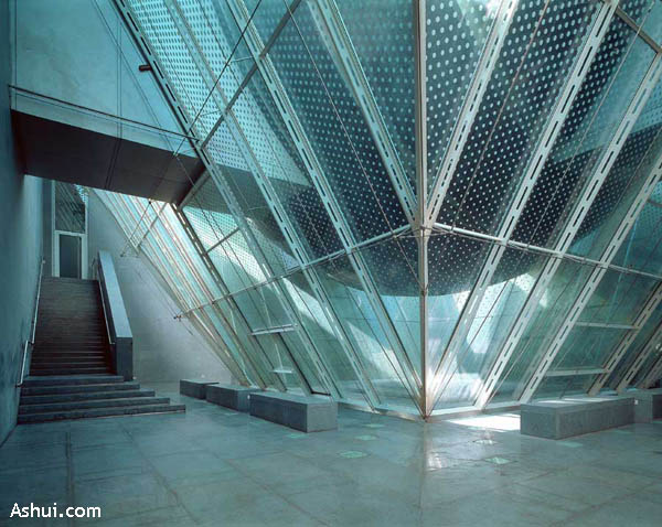 Mái vòm nghiêng đồng thời là mặt trước của kiến trúc