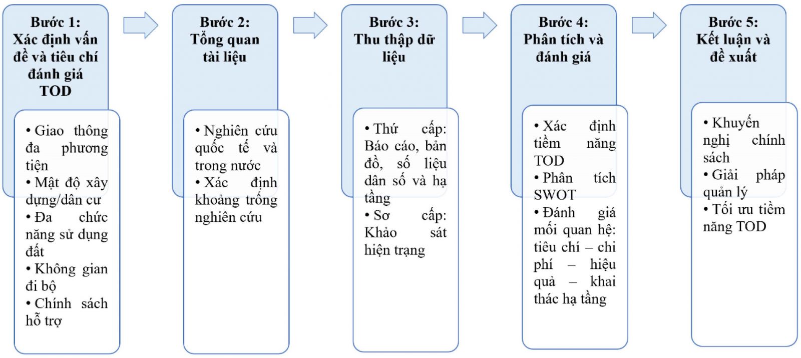 Trong bối cảnh này, phát triển đô thị theo hướng giao thông công cộng, hay TOD, được xem là giải pháp chiến lược nhằm tái cấu trúc đô thị, thúc đẩy phát triển đô thị theo chiều sâu, theo hướng xanh và bền vững [38].