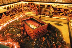 - Ảnh bên : Hình phục dựng nơi đặt linh cữu của Tần Thủy Hoàng trong Cung điện ngầm