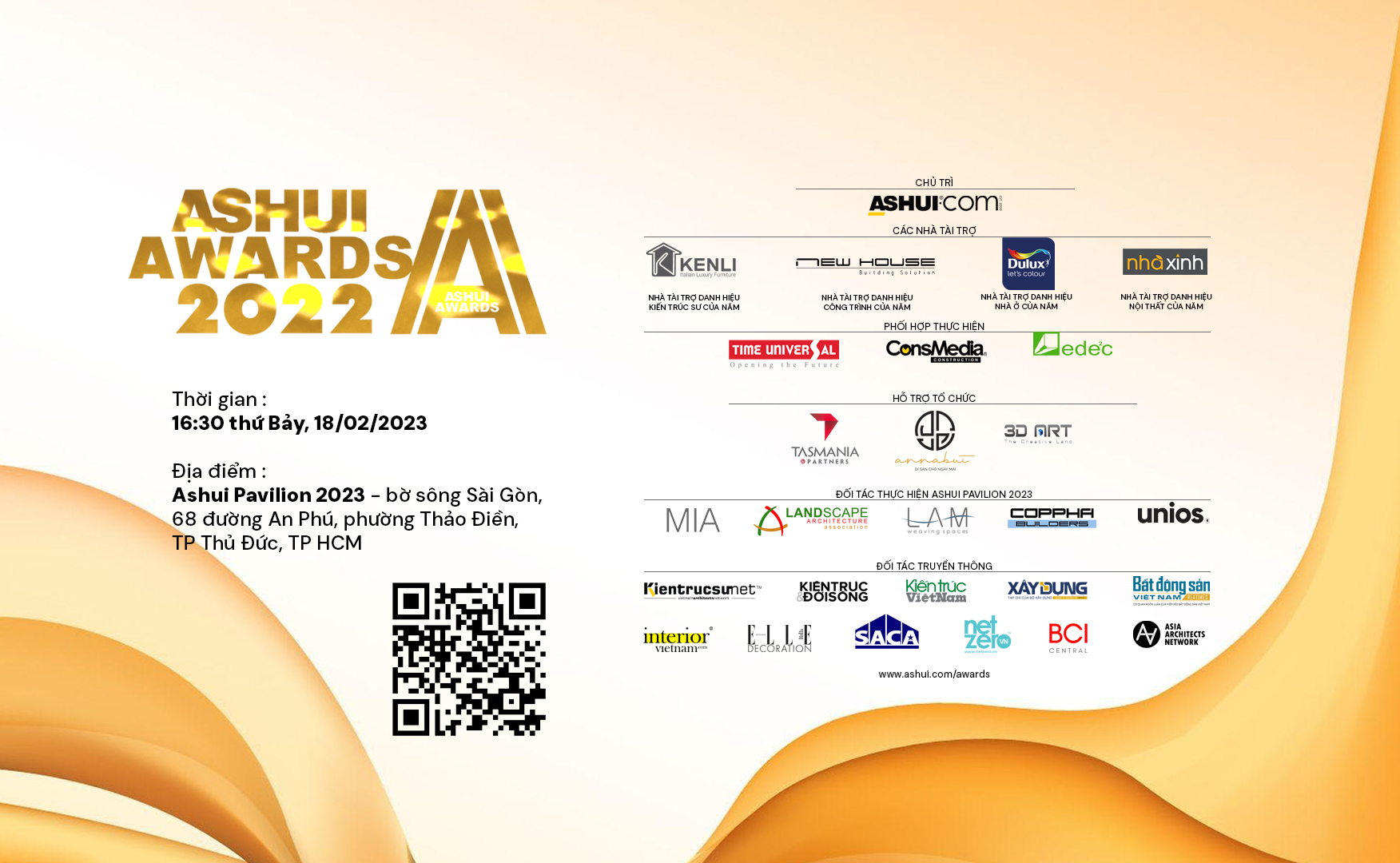 Ngày 18/02 tới đây, Lễ trao giải Ashui Awards 2022 (lần thứ 11) và triển lãm sẽ diễn ra tại Ashui Pavilion 2023 bờ sông Sài Gòn.