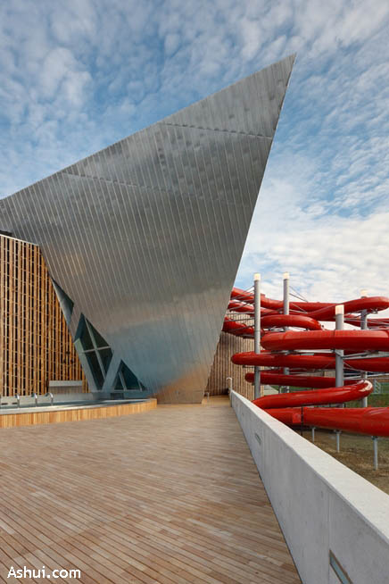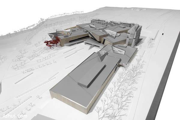 Hệ thống xà chạy dọc nóc nhà cũng không theo một đường nét cụ thể, tất cả đều tự nhiên và bản năng đúng theo tinh thần của kiến trúc giải tỏa kết cấu – vốn là xu hướng thịnh hành và phát triển nhất trong thế kỷ 21