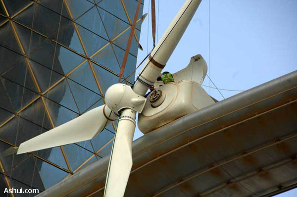 Trên ba chiếc cầu treo nối liền hai tòa tháp của tòa nhà là ba chiếc tuôcbin gió cực lớn. Mỗi tuôcbin có công suất tương đương 225kW,đường kính dài 29m, hướng về phía bắc để đón luồng gió thổi từ vịnh Ba Tư vào.