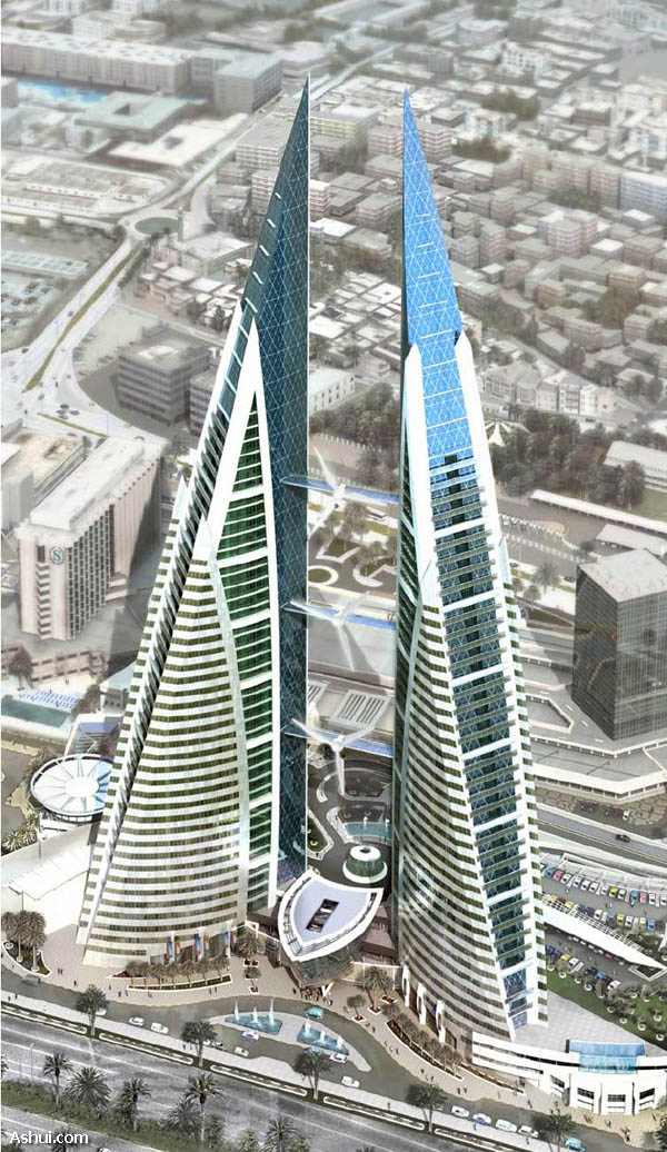 Bahrain vốn là một đảo quốc được bao bọc bởi các hồ nước mặn. Chính vì thế, đây quả là một cấu trúc hài hòa với môi trường nước xung quanh khi tòa nhà không chỉ có vẻ ngoài mang hình dáng một con tàu với hai cánh buồm khổng lồ mà còn có khả năng vận dụng tối đa năng lượng thiên nhiên vô hạn bằng các “cối xay gió” độc nhất vô nhị.