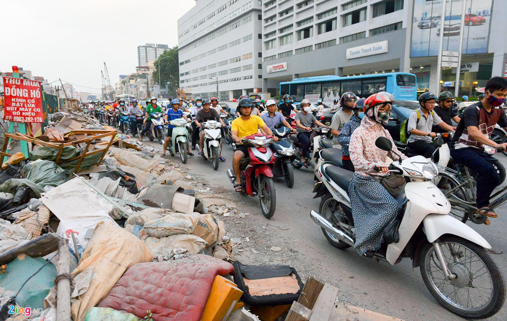 Vào giờ cao điểm, xe máy tràn lên vỉa hè, có người còn đi ngược chiều gây nên cảnh hỗn loạn. Lô cốt thường xuyên được di chuyển từ chỗ này sang chỗ khác phụ thuộc các hạng mục thi công gây mất phương hướng cho người tham gia giao thông.