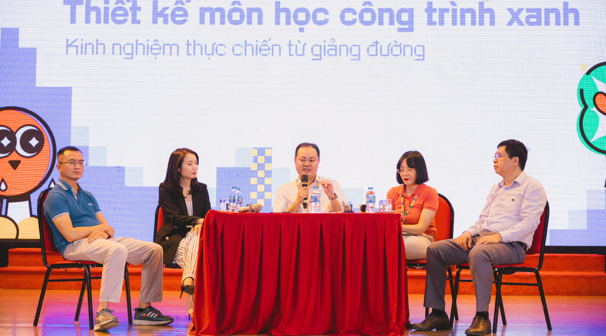 Một phiên thảo luận chuyên sâu trong khuôn khổ tọa đàm đã nêu bật những kinh nghiệm và thách thức khi đưa yếu tố xanh vào đào tạo như hạn chế về tín chỉ, thiếu tài liệu tiếng Việt hay sự bỡ ngỡ của sinh viên. Các giảng viên và doanh nghiệp cùng đề xuất mô hình giảng dạy song hành, kết nối tri thức hàn lâm với thực tiễn ngành xây dựng.