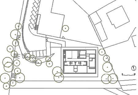 Vị trí nằm trong vùng ngoại vi với những đồng cỏ và cánh đồng xanh của trường đã đưa đến ý tưởng về một mặt ngoài được trang trí bằng các lớp đất có cỏ.