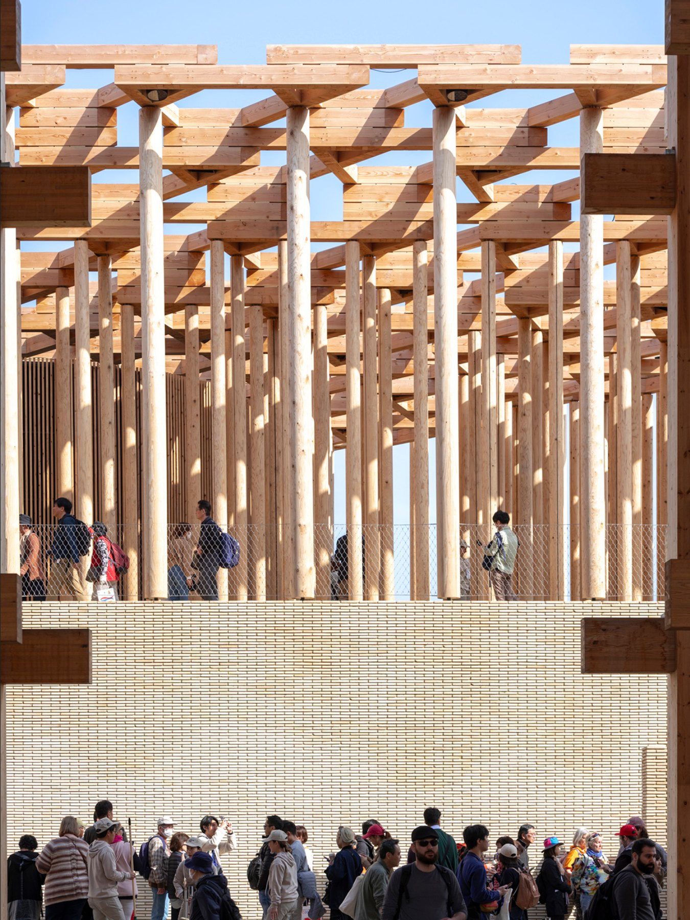 Mọi yếu tố, từ nền gạch đến sân thượng bằng gỗ cao vút, đều tôn vinh nghề thủ công và di sản môi trường của đất nước, đồng thời thể hiện tầm nhìn về thiết kế tuần hoàn. Sau Expo, cấu trúc có thể tháo dỡ và tái tích hợp hoàn toàn vào các chu trình tự nhiên hoặc kỹ thuật, tạo nên một ví dụ về kiến trúc thực sự bền vững.