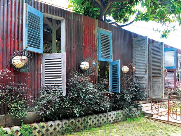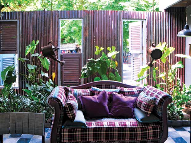 Khu vườn nhỏ với những loài cây rừng hoang dại được sắp đặt sao cho giống tự nhiên nhất, rất hợp với phong cách chung của quán