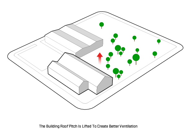 Dự án chủ yếu tập trung vào việc lưu thông gió tự nhiên. Mái sân của tòa nhà sẽ được nâng lên để cải thiện dòng chảy của việc lưu thông gió, trong khi các góc của hai tòa nhà cũng sẽ được nâng lên để tạo ra lối vào.