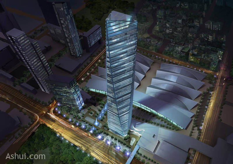 Nằm trên góc đại lộ Công viên và Trung tâm hội nghị, toà tháp này có thể đến dễ dàng từ nhiều nút giao thông chính. Quần thể tháp sẽ là điểm nhấn cho thành phố mới Songdo, và sẽ cung cấp lối vào dễ dàng tới các công trình phục vụ chất lượng cuộc sống như trung tâm hội nghị, bảo tàng, công viên trung tâm, sân golf Jack Nicklaus, khu công viên có bể nuôi, trường học quốc tế, bệnh viện quốc tế… Toà tháp sẽ mọc từ nóc của cửa hàng bán lẻ dài 366m diện tích 185.800m2 mới xây.