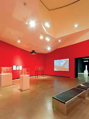 Phòng trưng bày nhỏ với ô lấy sáng trên cao. Phòng trưng bày trung tâm có chiều cao 22m.