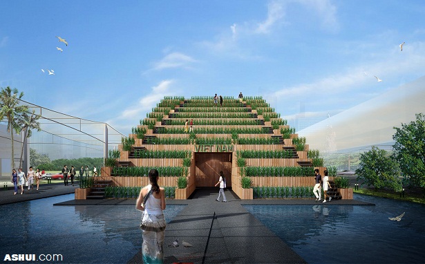 – Ruộng bao phủ công trình giúp điều hoà vi khí hậu & nguồn nước, đem lại lương thực, đồng thời tạo được hình ảnh đặc trưng (là sự hoà trộn của ruộng bậc thang & mái nhà truyền thống) ở cả ngoại thất và nội thất).